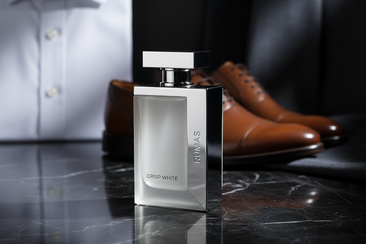 Precision in Every Presence. Some men are remembered for what they say. Others are remembered for how they carry themselves. Crisp White by RUMAS is inspired by tailored suits, polished shoes, and the quiet confidence of a man who knows that details define greatness. It is clean — but never simple. Bold — but never loud. This is refinement, sharpened.